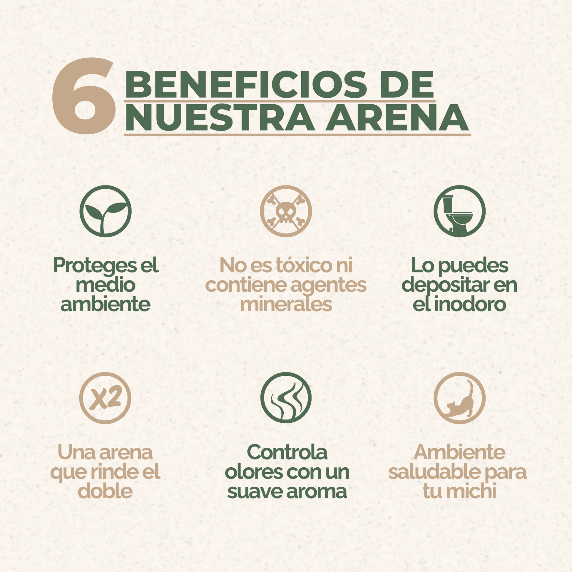 𓃠 Se aglomera fácilmente y dura más, porque rinde el doble que las arenas convencionales.